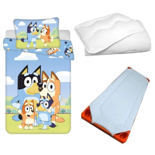 Bluey Happy Family gyerek, ovis ágyneműhuzat, derékalj és paplan/párna szett 100x135 cm 40x60 cm