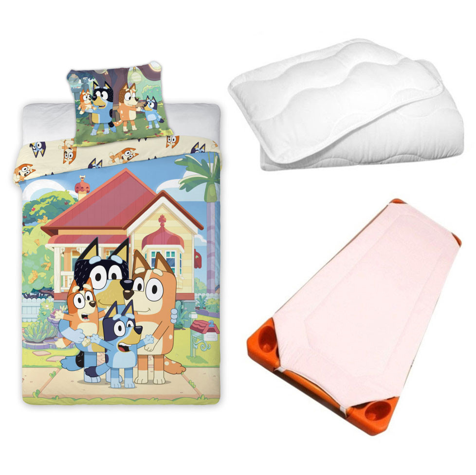 Bluey Happy Home Dreams gyerek, ovis ágyneműhuzat, derékalj és paplan/párna szett 100x135 cm 40x60 cm