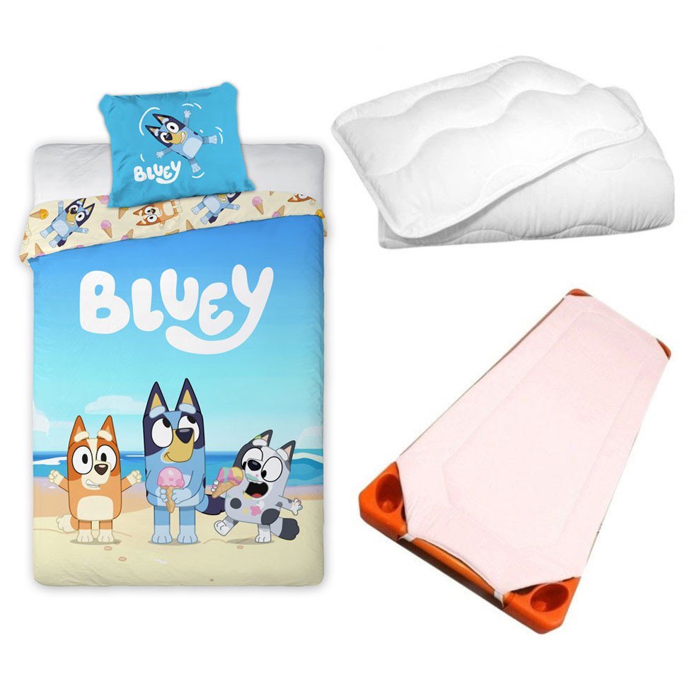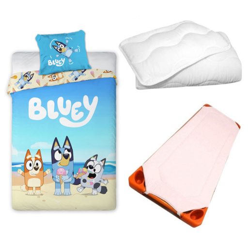 Bluey Together Time gyerek, ovis ágyneműhuzat, derékalj és paplan/párna szett 100x135 cm 40x60 cm