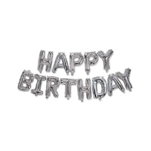 Happy Birthday Silver Fólia lufi