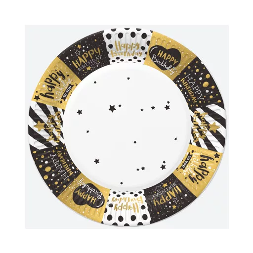 Sretan rođendan Golden Happy Birthday papirnati tanjur, 8 komada, 18 cm
