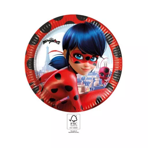 Miraculous Ladybug, Miraculous: Pustolovine Bubamare i Crnog Mačka Čudesna Bubamara, papirnati tanjur, 8 kom, 23 cm, FSC